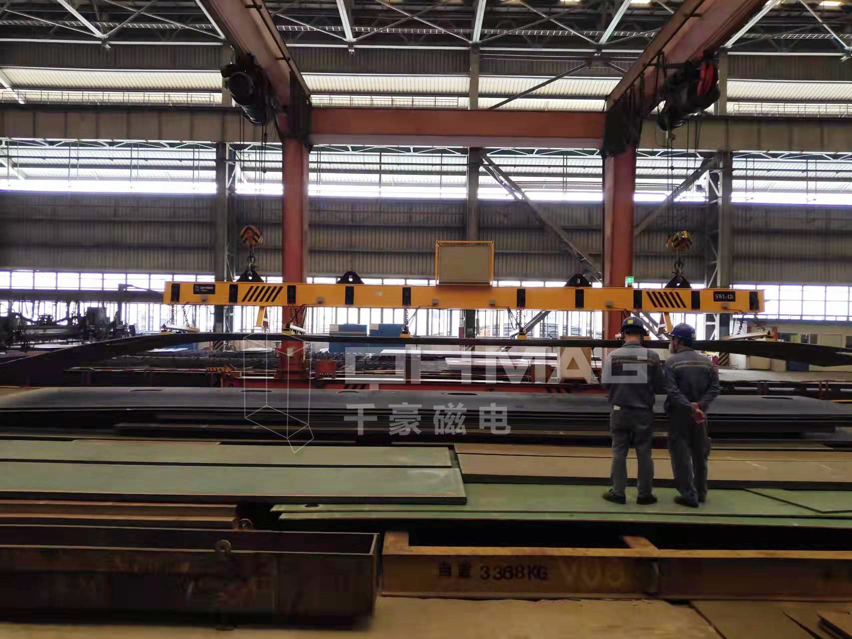 本次設(shè)計(jì)的電永磁吊具——吊鋼板,主要用于廣船國際造船用的鋼板搬運(yùn)起吊,千豪設(shè)計(jì)團(tuán)隊(duì)了解到現(xiàn)場(chǎng)需要起吊厚鋼板,薄鋼板,長度以及重量都不一,最長10米,最重達(dá)到40噸。