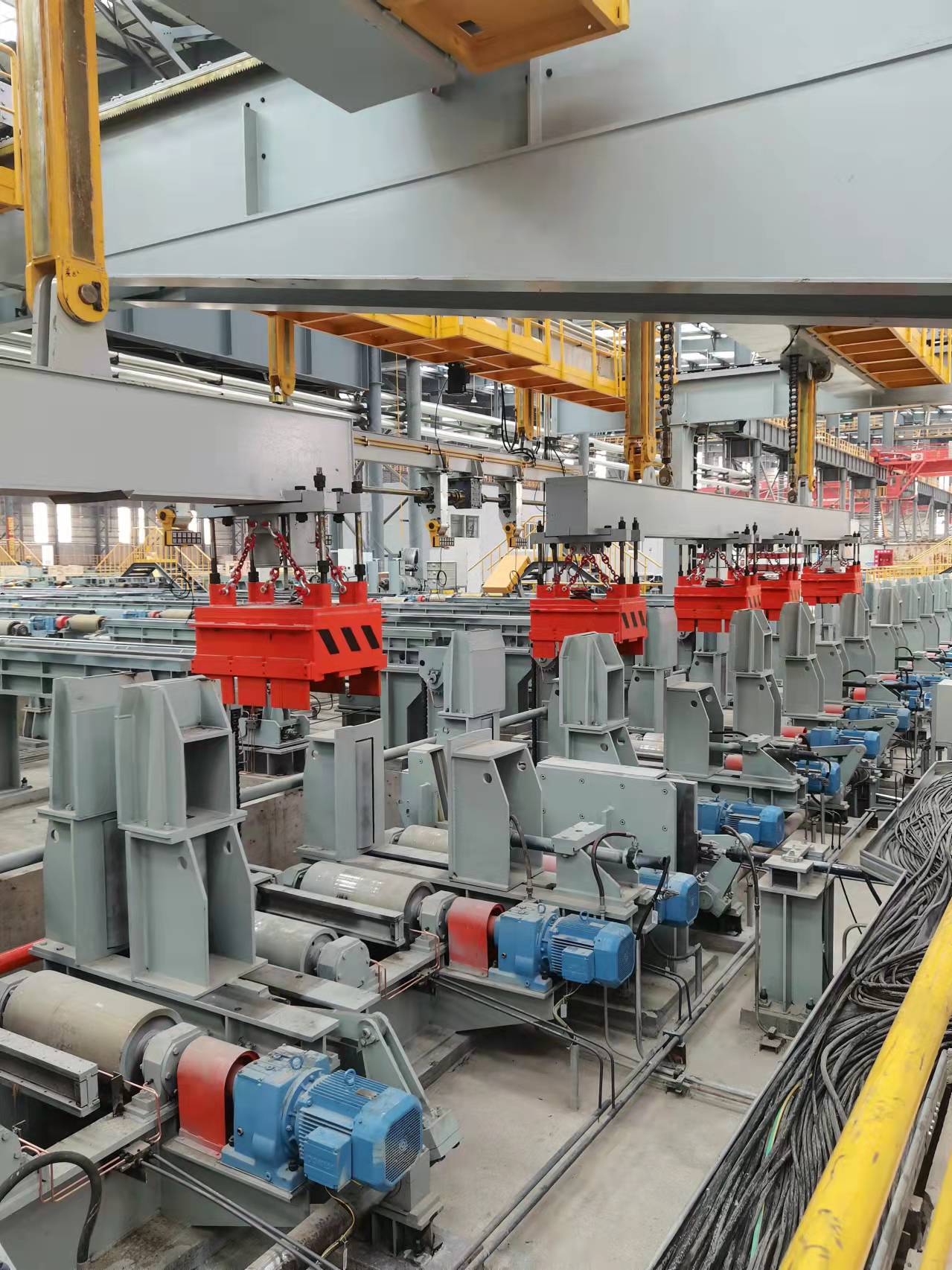 根據(jù)現(xiàn)場(chǎng)工況,此次設(shè)計(jì)的型材,鋼軌自動(dòng)化生產(chǎn)線用電永磁鐵,采用5臺(tái)聯(lián)吊,吊運(yùn)6~12米長(zhǎng)型材,鋼軌用。