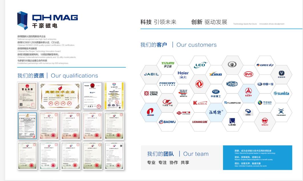 在電磁鐵轉(zhuǎn)型電永磁鐵上,千豪磁電吸取了許多老一輩電磁鐵人的經(jīng)驗與指導(dǎo),第一臺電永磁鐵的誕生離不開千千萬萬電磁鐵人的付出,也離不開那些堅持不懈的研發(fā)技術(shù)團(tuán)隊。